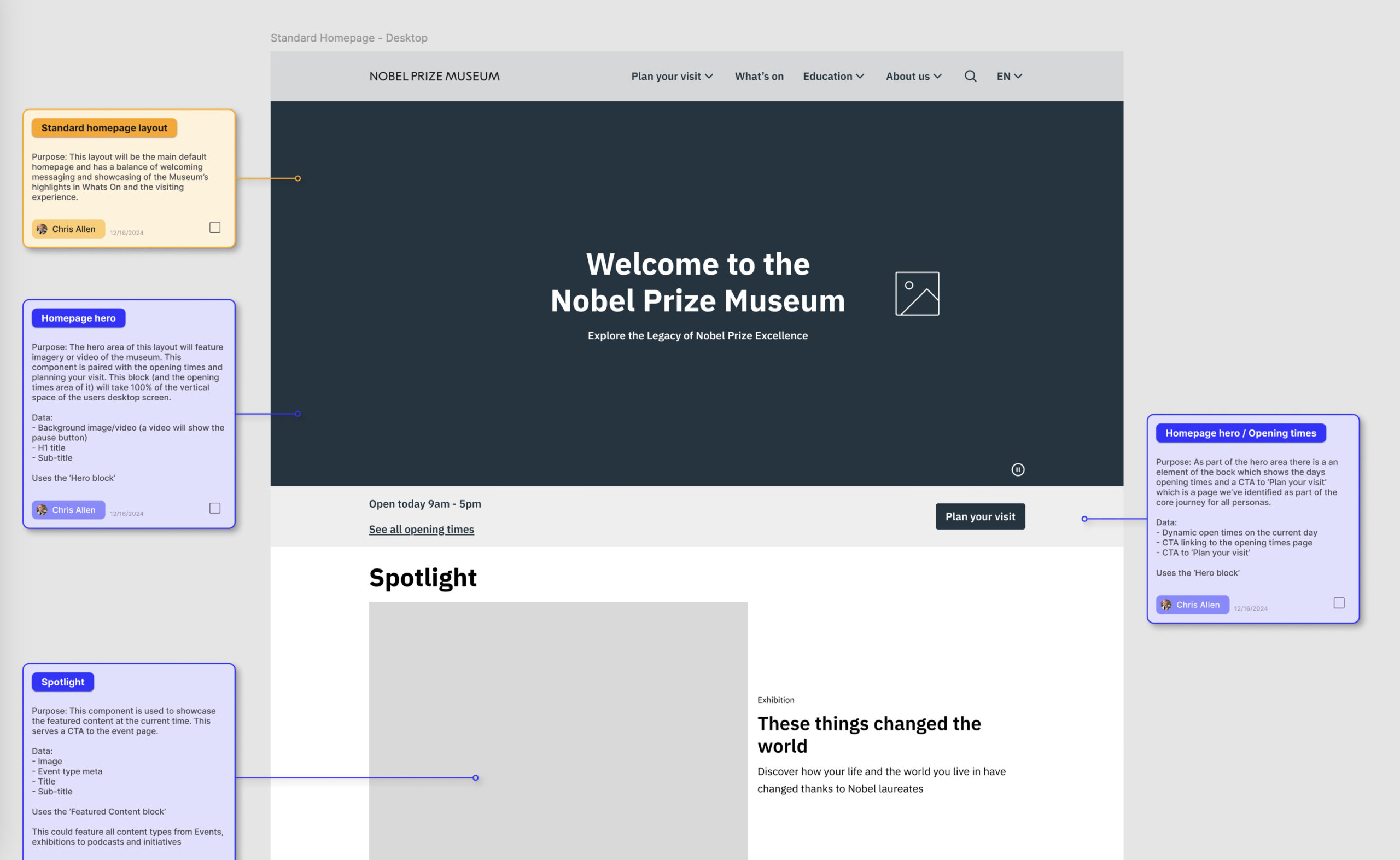I collaborated with teammates to plan and prepare a workshop in Sweden that set the direction for upcoming projects across both the Nobel Prize’s main site and the Nobel Prize Museum site. My focus was on shaping a unified design system that could flex across these properties while elevating how users engage with the content.